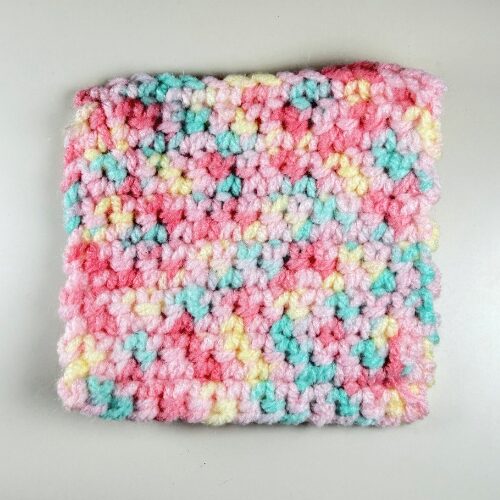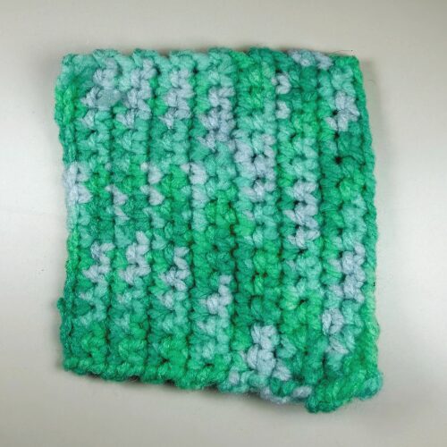 耐水性のある毛糸でしっかり編み上げており、使用後も乾きやすく、日常使いに適したクリーンでナチュラルな雰囲気を添えます。軽量(~50g)で取り回しやすく、メンテナンスが簡単な点も魅力です。ハンドメイドならではの個体差がやさしい表情を生み、キッチンに柔らかなアクセントを加えます。